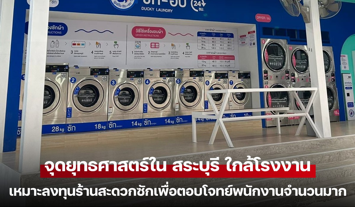 สระบุรี, ประตูสู่ภาคอีสานและเป็นหนึ่งในฐานการผลิตทางอุตสาหกรรมที่สำคัญที่สุดของประเทศไทย จังหวัดนี้ไม่ได้เป็นเพียงทางผ่าน แต่เป็นบ้านของ นิคมอุตสาหกรรม ขนาดใหญ่หลายแห่ง ที่เป็นแหล่งจ้างงานให้กับพนักงานนับแสนชีวิต วิถีชีวิตของ “พนักงานโรงงาน” ซึ่งขับเคลื่อนด้วยระบบการทำงานเป็นกะ (Shift Work) และมีเวลาพักผ่อนที่จำกัด ได้สร้าง “ความต้องการมหาศาล” ที่ยังไม่ได้รับการตอบสนองอย่างเต็มที่ นั่นคือบริการที่จะช่วยจัดการภาระงานบ้านได้อย่างรวดเร็วและมีประสิทธิภาพ และนี่คือจุดยุทธศาสตร์ที่สมบูรณ์แบบที่สุดสำหรับธุรกิจ “ร้านสะดวกซัก 24 ชั่วโมง” ที่มีระบบซัก-อบ-จบครบวงจร